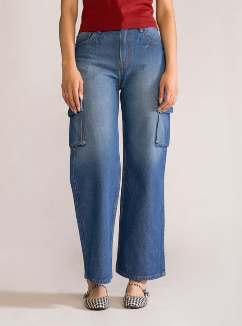 Immaculate Cargo Jeans, Azul Claro