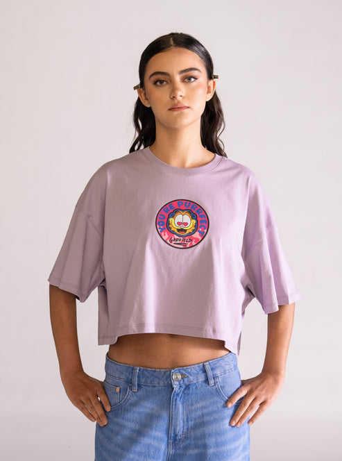 Garfield Purrrfect Cropped Playera, Morado Claro