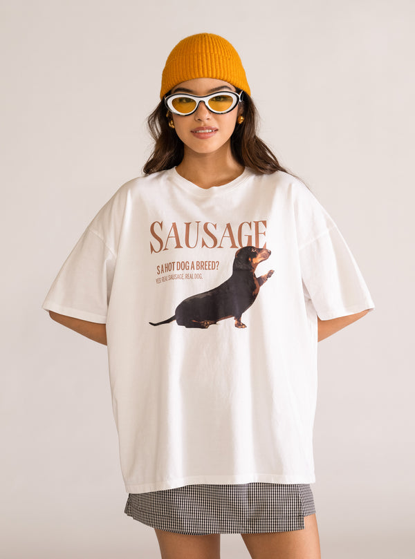 Sausage Oversized Playera, Blanco